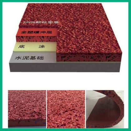 混合型塑胶跑道由全PU掺杂部分橡胶颗粒为底层,聚氨酯颗粒与塑胶浆为面层铺设组成的高性能塑胶结构。可全天候使用,雨后能立即使用。混合型塑胶跑道具有环保、全天候使用、弹力好、冲击力吸收、耐候性、耐磨性、耐压缩、抗钉力、耐冲击、平坦性、粘接性等特点、实用性强、日常维护简单易行。混合型塑胶跑道价格适中,适合各级各类学校及体育场、田径场跑道、全民健身路径、室内体育馆训练跑道、游乐场道路铺面。