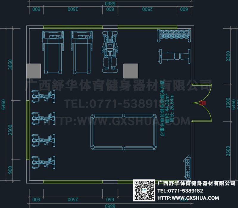 44m²企事业单位健身房由于场地有限,根据客户需求及预算,有氧器材区域配置米兰跑步机、椭圆机、动感单车、多元化的有氧器材能够有效提升心肺功能;自由力量区域配置哑铃套组满足多样化训练需求,促使健身训练更丰富。单位健身房配置台球桌,为员工的业余生活增添了乐趣和选择。与传统的健身器材锻炼相比,台球具有更强的娱乐性和趣味性,能够吸引更多员工参与到健身活动中来,提高健身房的使用率,让员工在工作之余有更多放松身心的方式。