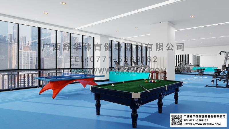 15.台球桌*1张-单位健身房配置台球桌,为员工的业余生活增添了乐趣和选择。与传统的健身器材锻炼相比,台球具有更强的娱乐性和趣味性,能够吸引更多员工参与到健身活动中来,提高健身房的使用率,让员工在工作之余有更多放松身心的方式。