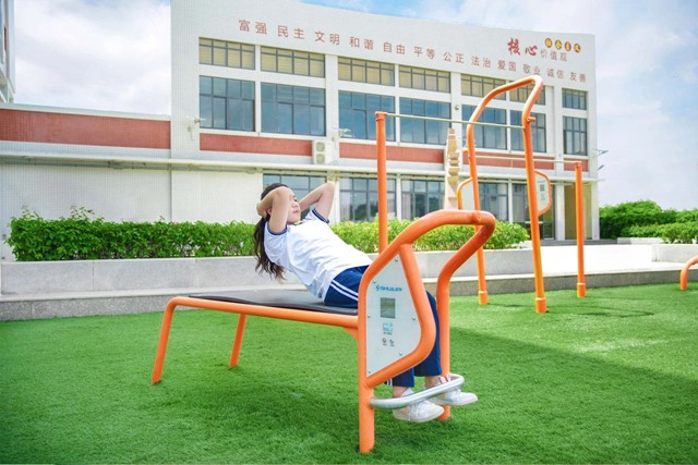 运用星火+系列智能健身器材进行锻炼时,学生可通过刷卡、手环登录,器械上智能显示学生的学号、锻炼次数、时长和成绩,运动数据一目了然。