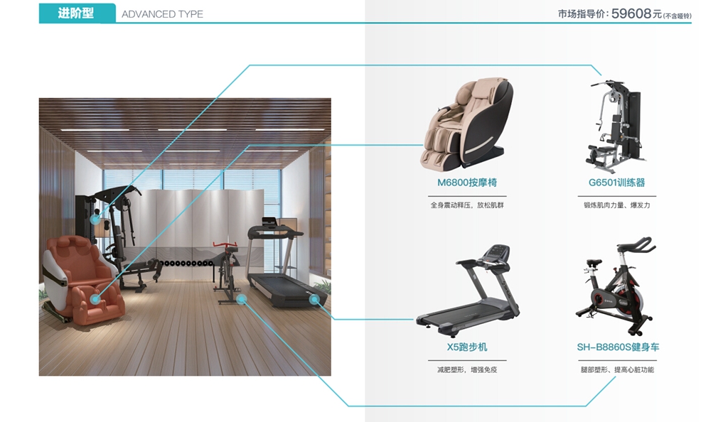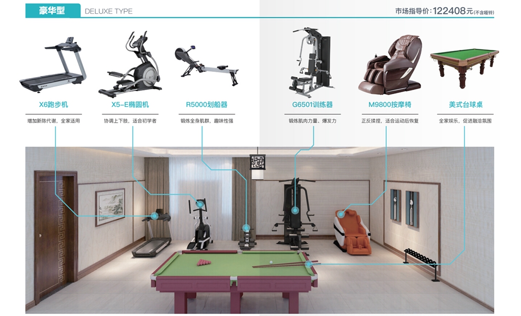 米兰可为您的家庭打造一个私家健身房,提供全面的有氧训练、力量训练、功能性与柔韧性训练和理疗按摩器材,以及运动健康管理服务,让简单运动融入生活,帮助您的家庭实现健康目标。